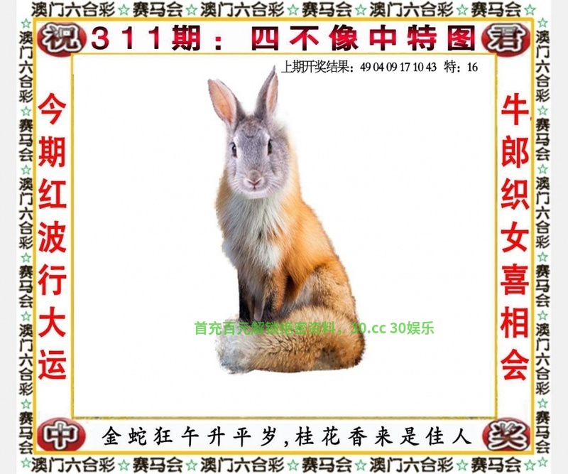| 306期:平特一尾✬【444尾】✬开:虎04准 |